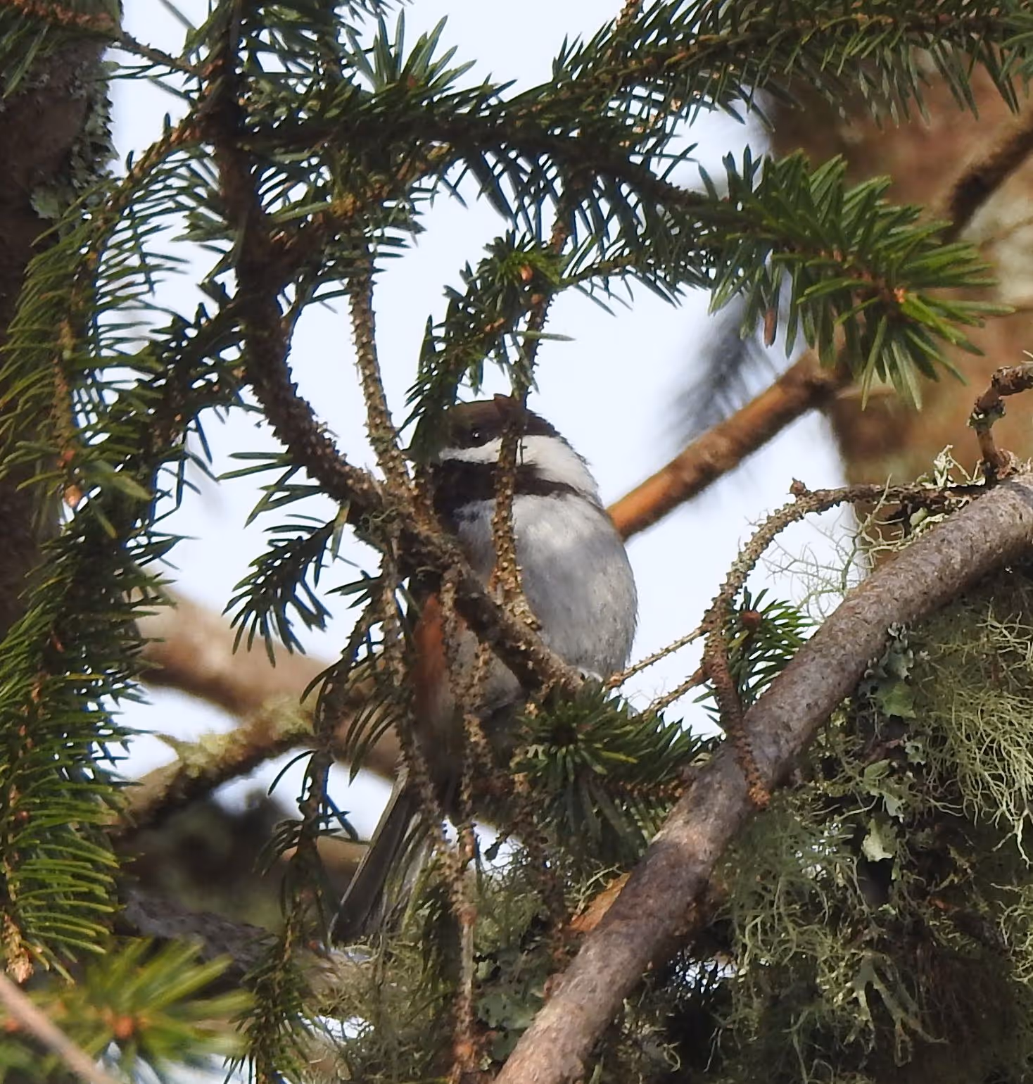 Finally, I made the short drive to Oyhut Wildlife Area and headed down the path to the beach. There were about 200 ducks along the far edge of the pools along the tree line. A spotting scope would have made this less frustrating, but with my camera’s grainy closeups, I was able to discern a variety of ducks: northern pintails, gadwalls, American wigeons, 2 buffleheads, 1 pied-billed grebe, and a cackling or Canada goose. Plus a great blue heron and one coyote! A fellow birder spotted a European wigeon among the flocks. On the way back to the car, I climbed the wood observation tower and enjoyed the spotted towhees and Bewick’s wrens that sang at the tree edges. I also saw an Anna’s hummingbird, a northern flicker, and American crow.