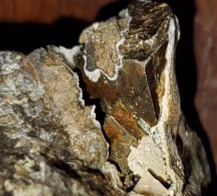 Among the crystals we see a shiny gold spot – Fools Gold?