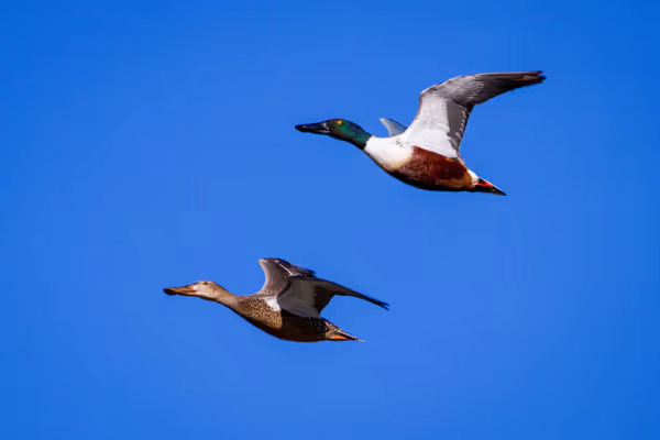 Variations in wing shape and size allow waterfowl to thrive in their respective habitats. Geese and “dabbling ducks,” like Mallards, inhabit shallow wetlands that are easily traversed by predators. Long and broad wings are key for quick takeoffs and maneuvering around obstacles like trees and cattails.