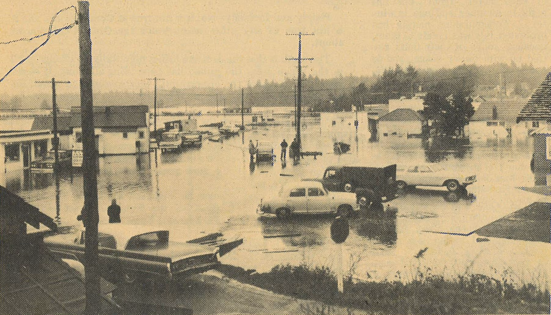 Flooding in Copalis the first weekend of December. Cover photo of Vol. 4 No. 11 of the Ocean Observer, December 18, 1967.