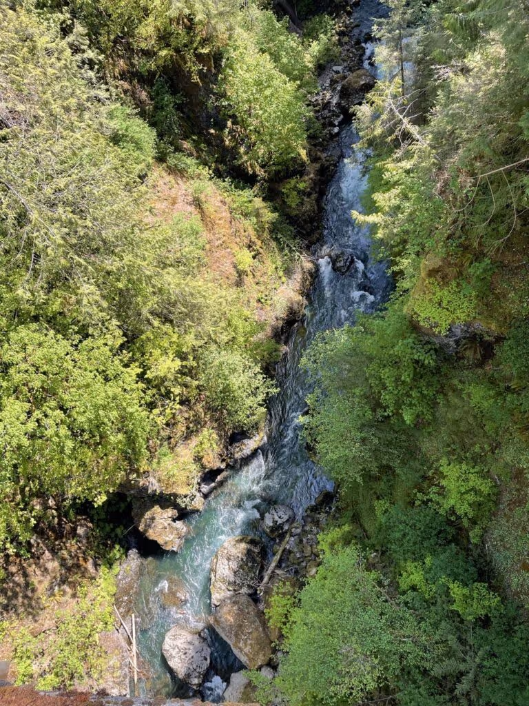 Continuing up Donkey Creek Road, a left turn along road NF 2404 leads to a river gorge. A short trail emerges from a well-maintained parking lot allowing views of the gorge and river upstream. This is a stunning area and less than an hour from Ocean Shores, Aberdeen, and Hoquiam. Numerous trails are found upstream of this point in the USFS Olympic National Forest.