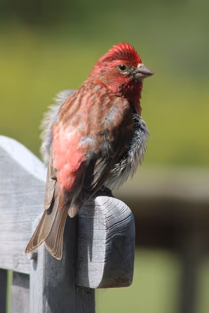 Compared to most small forest birds, Purple Finches are chunky and large. Their conical beaks are larger than those of any sparrow (2). Their tails are relatively short and clearly notched at the tip (2). Members of both sexes weigh anywhere from 0.6 to 1.1 ounces (18 to 32 grams), have a wingspan of 8.7 to 10.2 inches (22 to 26 centimeters), and are 4.7 to 6.3 inches long (12 to 16 centimeters) (2).